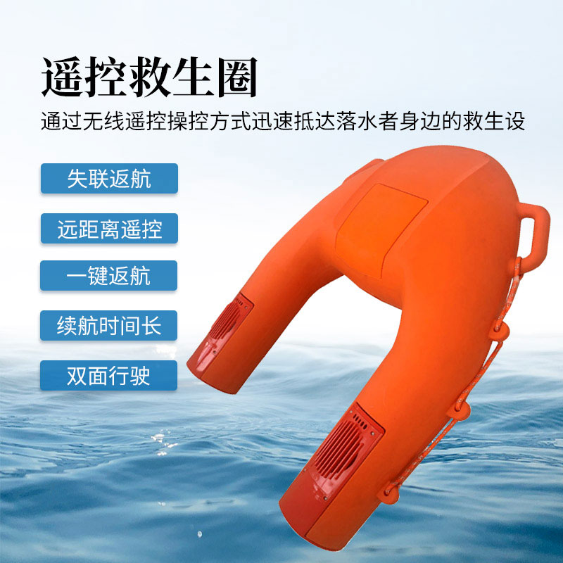 遥控救生圈是一款通过无线遥控操控方式迅速抵达落水者身边的救生设备;遥控救生圈由4个涵道式推进器组成,具有速度快、双面行驶、一键返航、失联返航、续航时间长、遥控距离远、浮力大、安全性强、施救更精准等特点;适用于河流、近海、江河、湖泊、水库等救援场景。