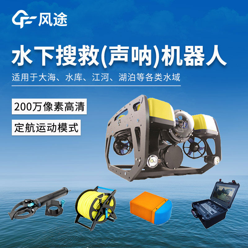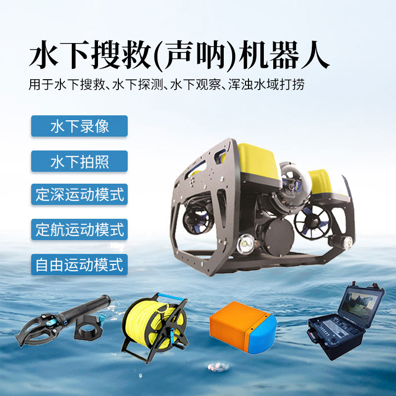 水域救生机用于水下搜救、水下探测、水下观察、浑浊水域打捞;水域救生机通过高清摄像头及多波束声呐把水下环境(含浑浊水域)以视频或照片的方式回传到地面用于搜救人员分析,有效的缩短搜救时间,提高搜救成功率;适用于大海、水库、江河、湖泊等各类水域。