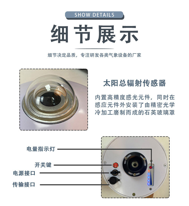 本产品符合中国气象最新标准《GB∕T 19565-2017总辐射传感器》要求。