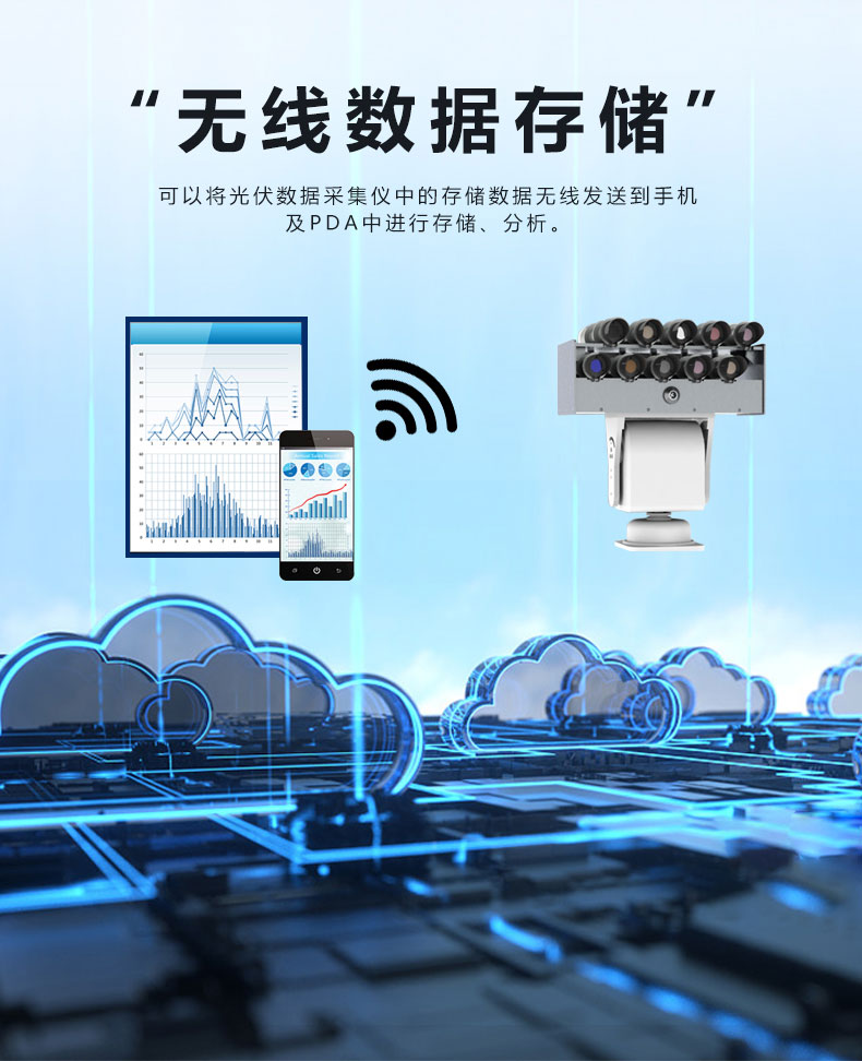 3、无线数据存储:领先的无线存储数据技术。可以将光伏数据采集仪中的存储数据无线发送到手机及PDA中进行存储、分析。