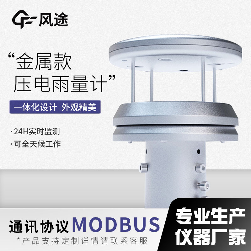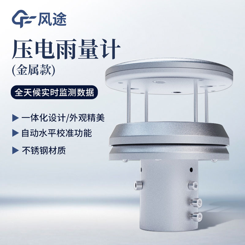 【产品简介】一、金属款压电雨量计产品概述本压电雨量传感器采用PVDF压电薄膜作为感雨器件,通过嵌入式AI神经网络分辨雨滴信号,避免因砂砾、灰尘、振动等干扰带来误触发。广泛应用于气象环境监测、水···