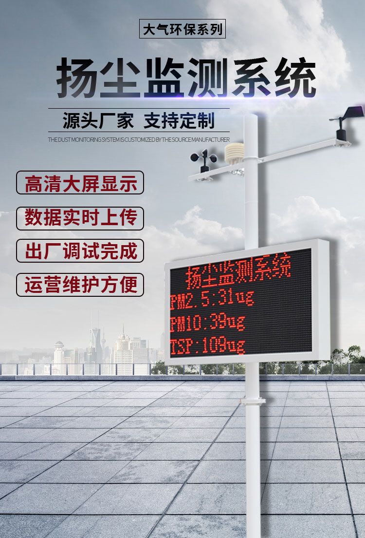 【产品简介】我公司为改善空气质量利用无线传感器技术和激光粉尘测试设备,自主研发的扬尘监控仪,除了可以实现扬尘监控以外,还可以监测PM2.5、PM10,PM1.0、TSP、噪声、环境温度,环境湿···