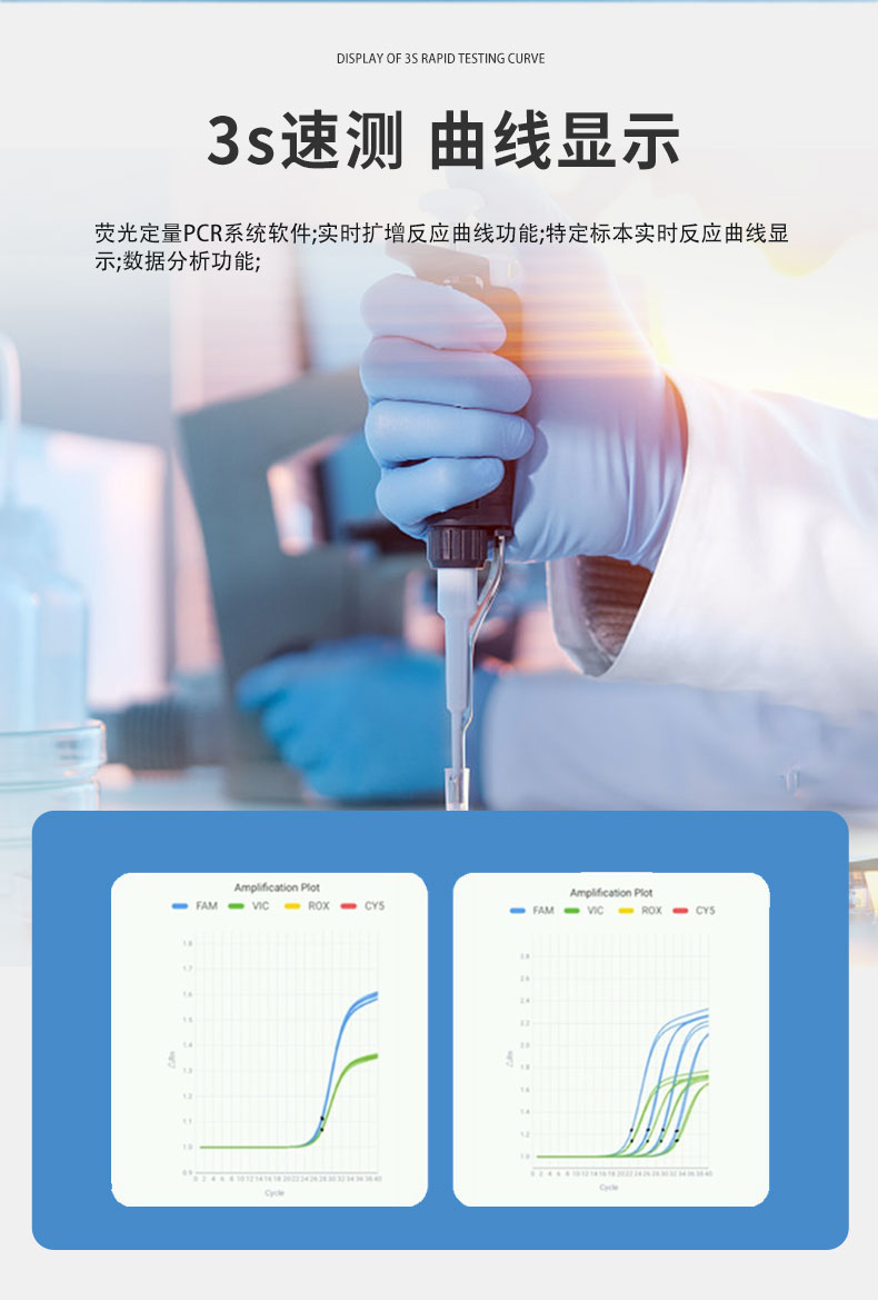 软件功能:荧光定量PCR系统软件;实时扩增反应曲线功能;特定标本实时反应曲线显示;数据分析功能;