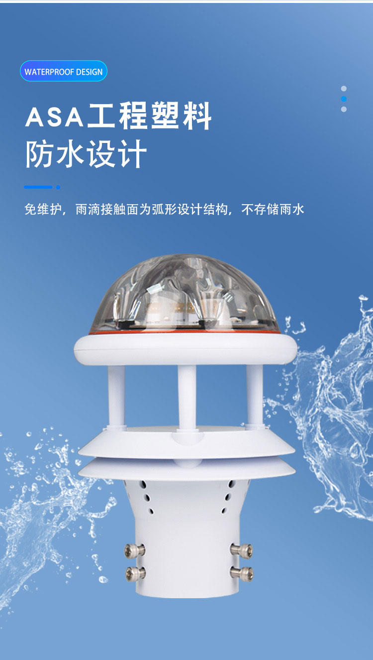 【产品简介】一、光学雨量传感器产品简介光学雨量传感器采用三通道窄带红外探测器、纯正弦交流信号源,具有精度高、抗环境光能力强、免维护、可兼容其他光学传感器(光照、紫外辐射、总辐射)等优点,可广泛···