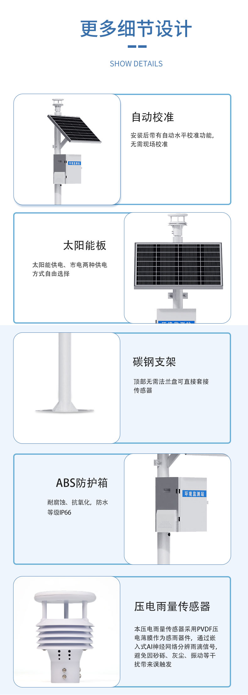 【产品简介】一、压电雨量监测站产品概述YJ2压电雨量监测站是一款以物联网为基础的现代型雨量站,由压电雨量传感器、采集器、太阳能供电系统、立杆支架等组成,设备能够以无线远程发送的形式发送雨量数据···