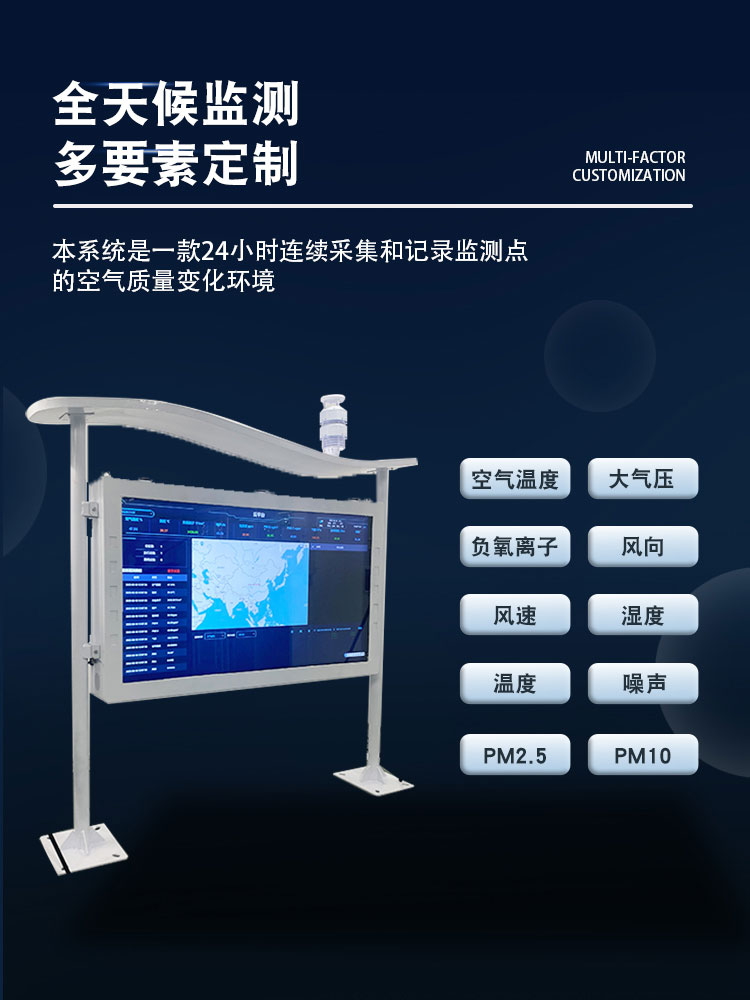【产品简介】一、一体化负氧离子监测站产品简介一体化负氧离子监测站可全天候监测空气中负氧离子浓度,同时可根据用户需求扩展监测项目,如:空气温度、空气湿度、PM2.5、PM10、大气压力、氧含量、···