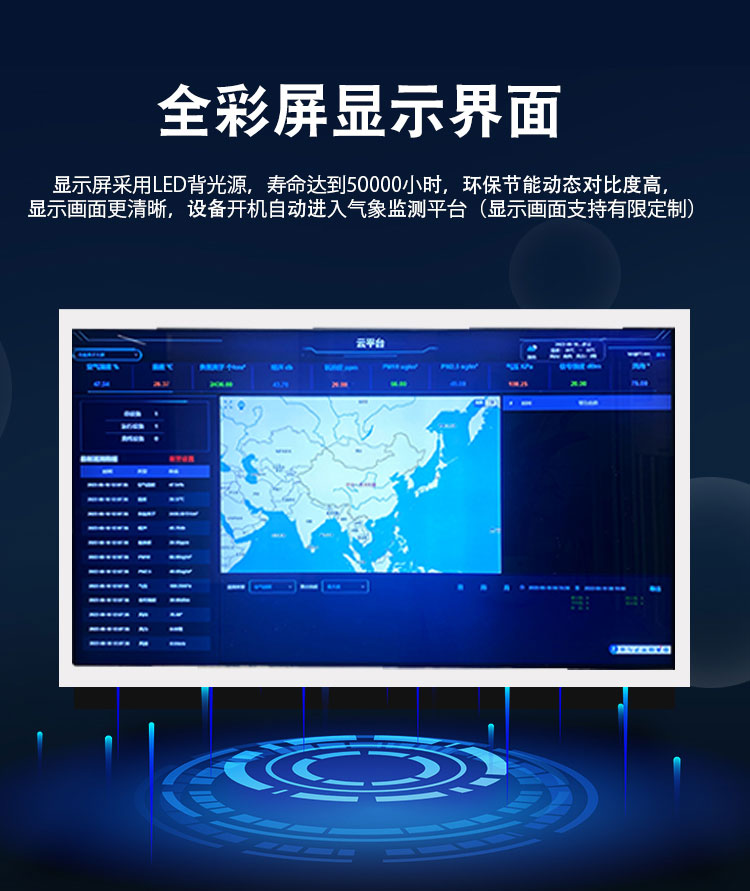 11、全彩显示界面,设备开机自动进入气象监测平台(显示画面支持有限定制)