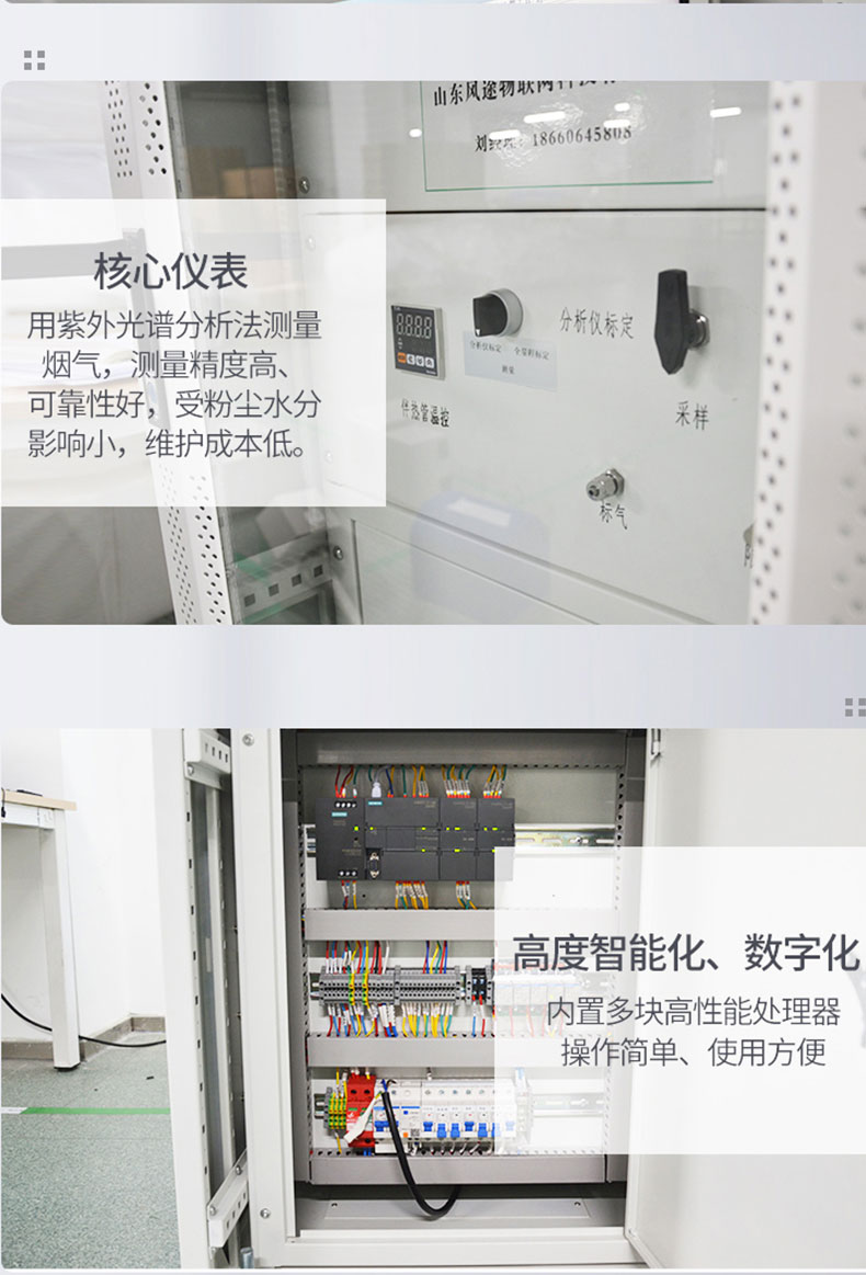 Ø核心仪表采用紫外光谱分析法测量烟气,测量精度高、可靠性好,受粉尘水分影响小,维护成本低。