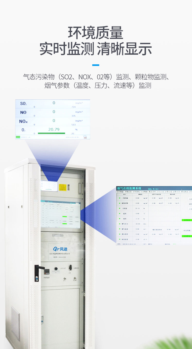 根据贵方提出的测量需求,风途科技所推出的cems烟气监测系统可以连续监测SO2、NOX、02(标准、湿基、干基和折算)、颗粒物浓度、烟气温度、压力、流速等多项相关参数,并统计排放率、排放总量等。从而对测量到的数据进行有效管理。
