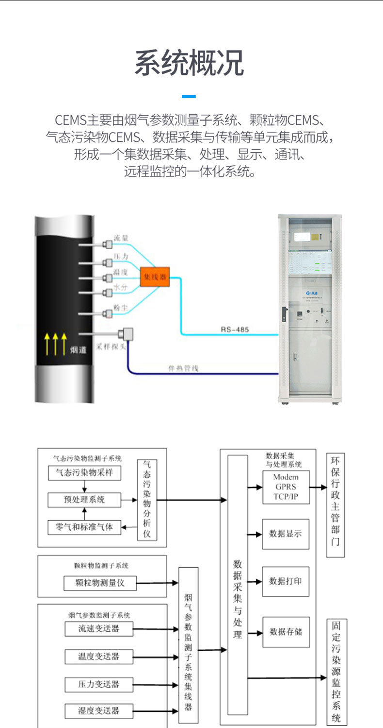 cems烟气监测系统由气态污染物(SO2、NOX、02等)监测、颗粒物监测、烟气参数(温度、压力、流速等)监测及数据采集与处理4个必选子系统组成。