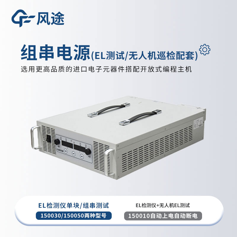 组串电源为我司针对光伏电站组串反向上电特性所研发,通过将交流电转换为直流电输入电池板激发电致发光,从而进行EL的内部缺陷测试。