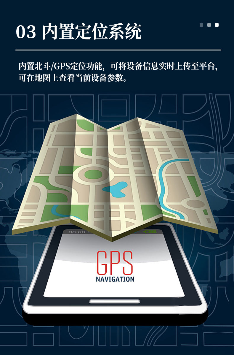 9、内置北斗/GPS定位功能,可将设备信息实时上传至平台,可在地图上查看当前设备参数。