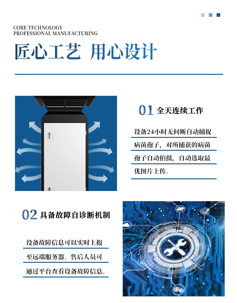 4、设备24小时无间断自动捕捉病菌孢子,对所捕获的病菌孢子自动拍摄,自动选取最优图片上传。